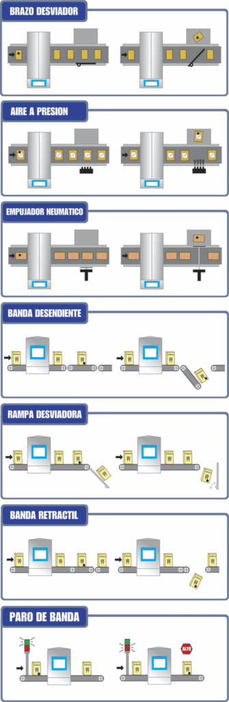 Estos equipos son montados en la banda transportadora, tobogán inclinado u otro sistema de transporte.