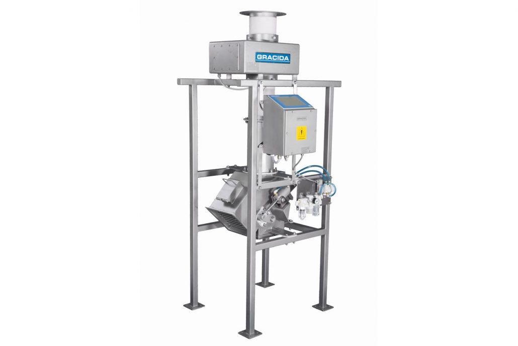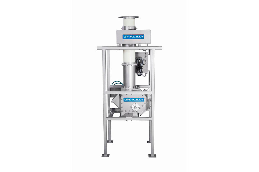 El Detector de Metales Tipo Caída Libre inspecciona productos en polvo y granulados eliminando los contaminantes a través de su válvula de rechazo.